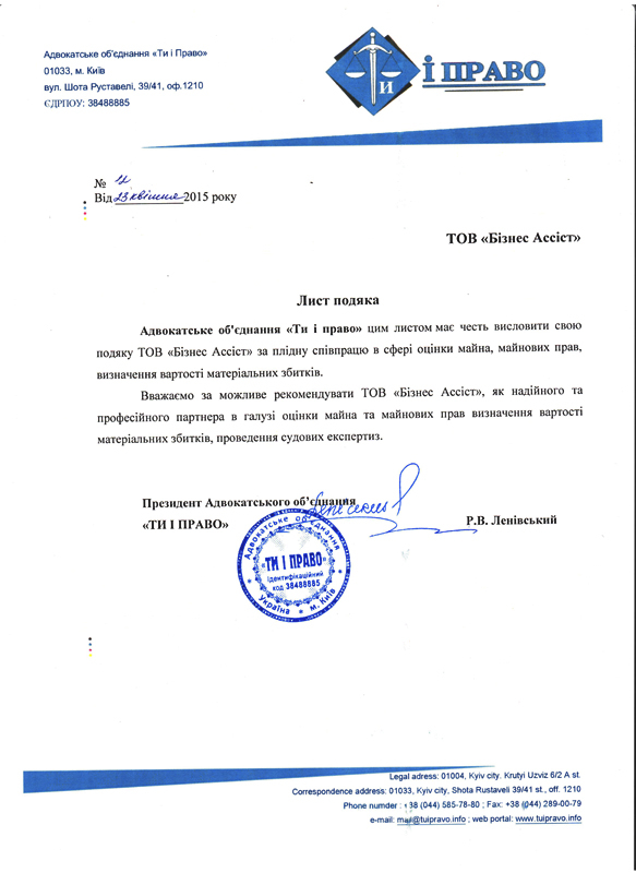 В команде ООО “Бизнес Ассист” юристы и экономисты с 20-летним стажем. Руководитель компании — кандидат экономических наук, заслуженный экономист Украины, советник Министра экономики в 2008-2010 годах. За 11 лет работы мы провели более 10 000 оценок и 1300 экспертиз. Разбираемся в экономике, строительстве, юриспруденции, финансовом и бухгалтерском деле. Постоянно повышаем квалификационный уровень сотрудников. Посещаем курсы, семинары, проходим ежегодную аттестацию. Сертифицированы Европейской группой ассоциаций оценщиков TEGoVA.