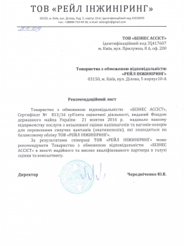 Все сотрудники компании “Бизнес Ассист” прошли сертификацию в Европейской группе ассоциаций оценщиков TEGoVA и получили статус “Признанный Европейский Оценщик” (REV). Сертификат REV обязывает оценщика соответствовать современным стандартам Европейского уровня, руководствоваться в работе самыми современными методами проведения оценки. Статус REV подтверждает высокий профессионализм и позволяет международным клиентам и инвесторам быстро определить квалифицированных оценщиков.