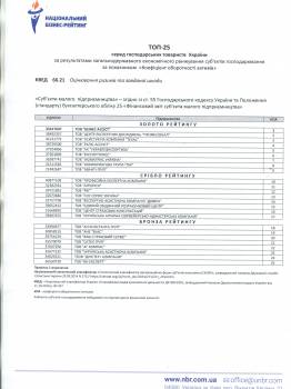 Согласно протоколу № 20 от 18.03.2019 компания внесена в Национальный реестр «Лучших поставщиков товаров и услуг Украины» и будет опубликована на сайте Аналитического центра с отметкой рекомендации для сотрудничества.